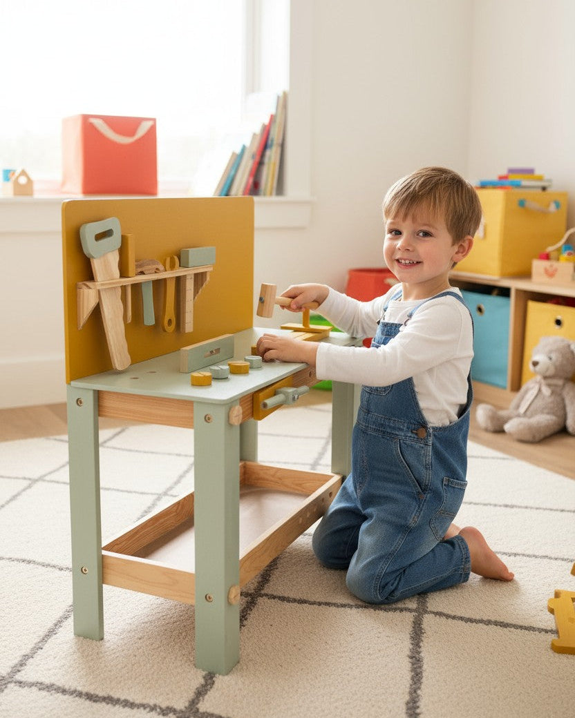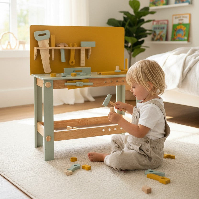 ✔️ Incluye herramientas de juego: martillo, sierra, destornillador y más